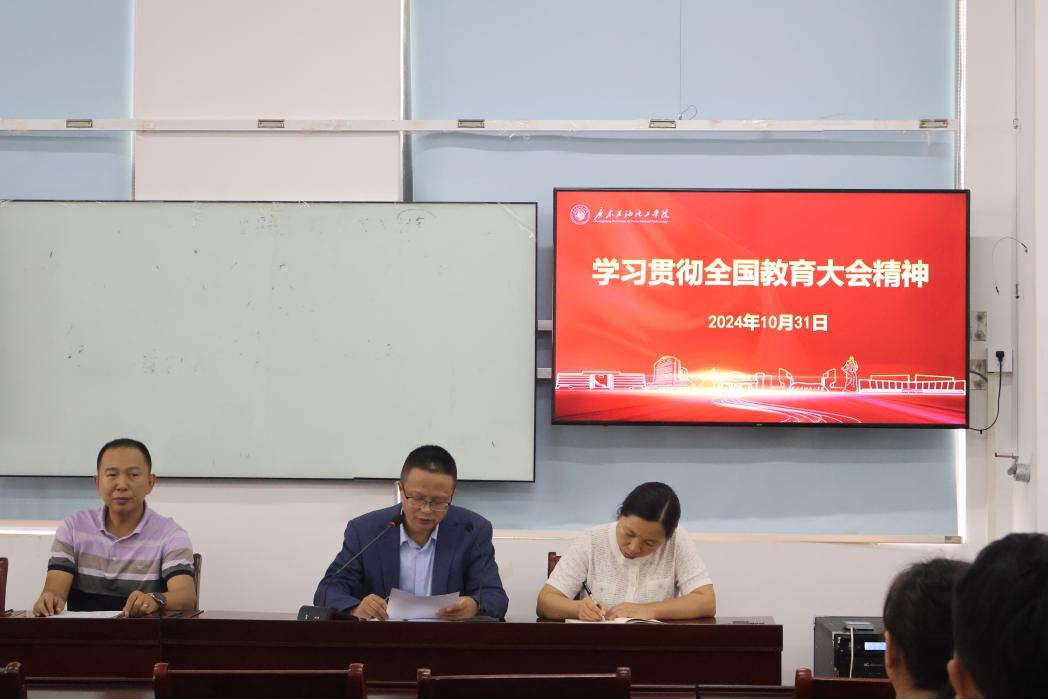 会上,余长林首先传达学习贯彻全国教育大会精神,强调全体教职工要将大会精神转化为做好实际工作的精神动力,锚定学校“申博改大”、实现高质量发展的目标,努力提升人才培养质量,加强学院核心竞争力。接着,他围绕高水平的科研项目申报,鼓励学院教师要集中发挥自身优势资源,明确研究方向,积极申报有化工特色的创新性研究选题,全力推进学院学科建设实现更好的发展。