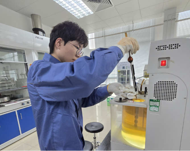 化工学院硕士研究生姜入正在开展船用油品粘度测定实验