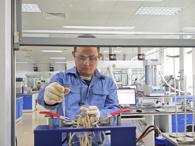 化工学院硕士研究生李爱港正在开展船燃热老化实验