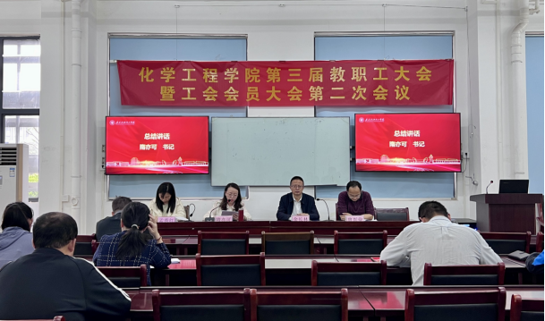 3月5日下午,化学工程学院在化工楼C104隆重召开第三届教职工大会暨工会会员大会第二次会议,全院教职工参加大会,学院党委书记隋亦可主持会议。