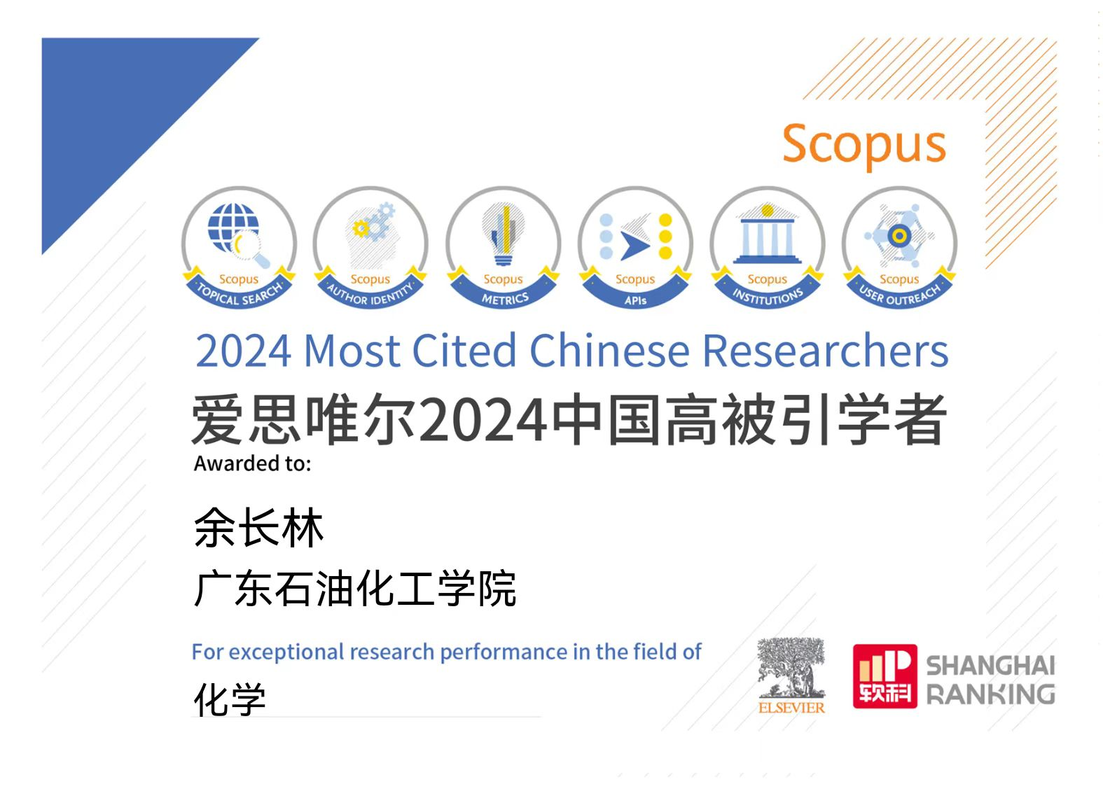 化学工程学院余长林教授入选爱思唯尔2024“中国高被引学者”榜单