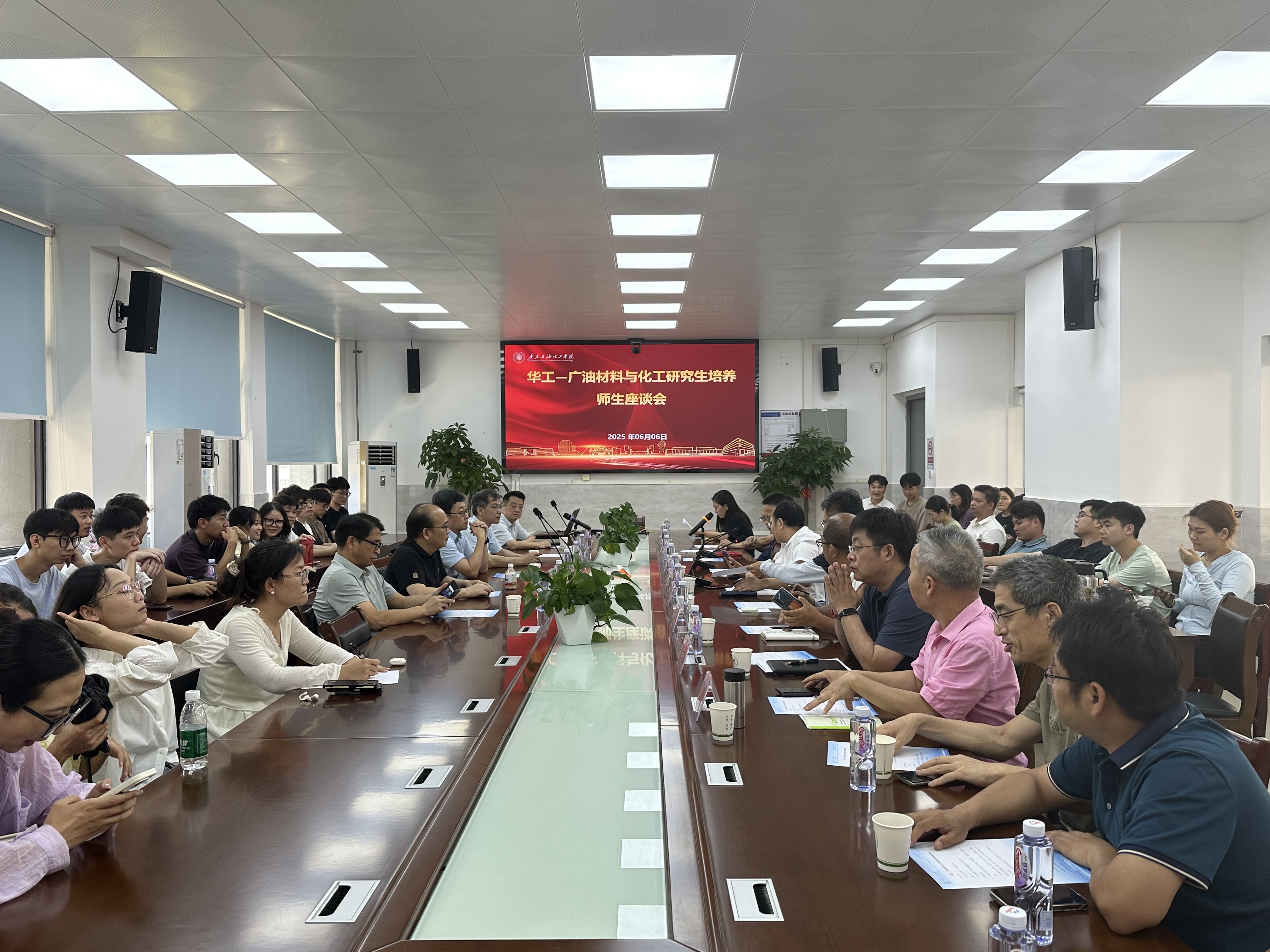 2025年6月6日下午,华南理工大学(以下简称“华工”)与437ccm必赢国际版(以下简称“广油”)共同召开了“材料与化工专业硕士研究生联合培养师生交流会”,来自两校的导师代表、联合培养研究生以及广油材料与化工专业的全体研究生参加了此次交流活动。