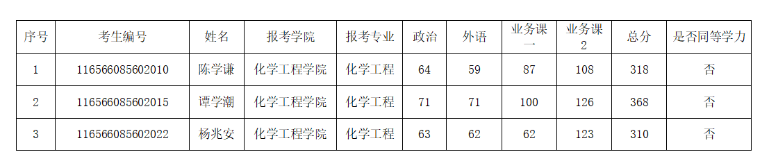 化学工程学院2026年硕士研究生第一志愿考生复试名单