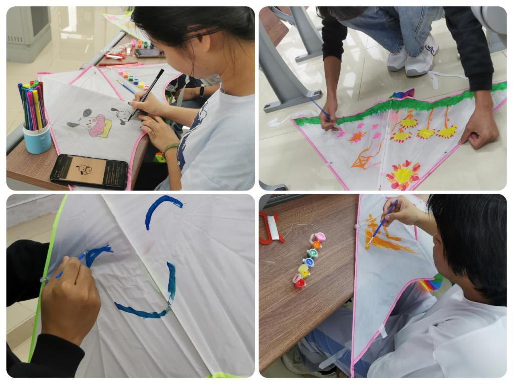 活动中,同学们发挥着丰富的想象力和创造力,在风筝上绘制出一幅幅美丽的图案,寄语各自的憧憬与希望,一只只精美的风筝拉近了心与心的距离。