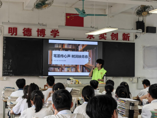4月21日,八名志愿者走进茂名市第十六中高二11班与12班,以“致未来自己的一封信”为引,向120名高中生发出温暖的"树洞邀约",用生动的宣讲拉开活动序幕。