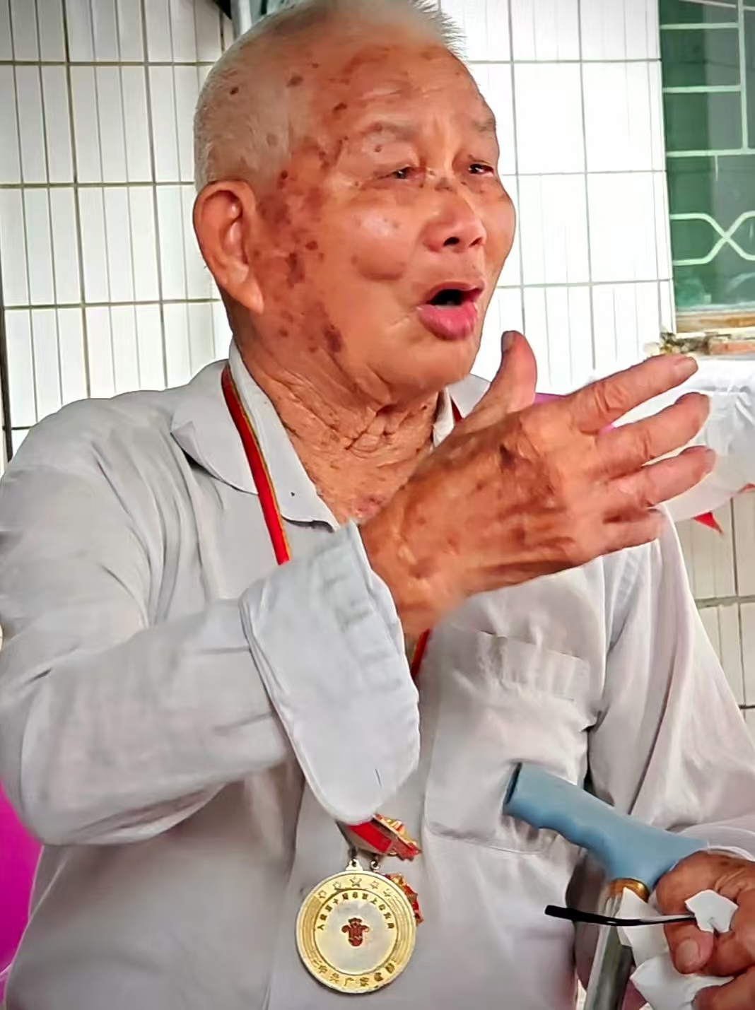 “每一个细节都像发生在昨天。” 老人的讲述时而激昂、时而沉重,让围坐的青年学子仿佛穿越时空,目睹了那段战火纷飞的岁月。这场跨越世纪的对话,成了最生动的 “红色课堂”。最后,老人紧紧握住围坐在身旁的青年学子们的手,掌心厚厚的老茧传递着历史的厚重与嘱托的滚烫:“年轻人啊,要记住他们!他们没走完的路,要靠你们接着走下去!”
