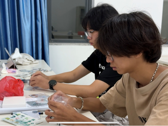 基于调研结果,团队迅速与基地达成合作,启动莲子心茶产品升级。成员精心选购印有莲花、莲叶图案的贴纸,采用透明包装袋分装茶品,既保留产品可视性,又强化了“莲花基地”特色印记。