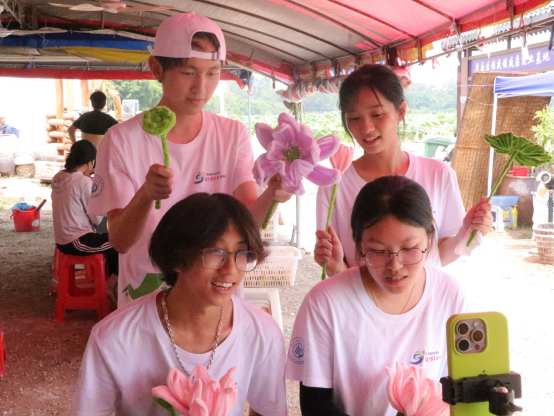 为探寻乡村特色产业发展新路径,化学工程学院油韵汇锦实践团于暑期走进茂名镇盛樟岭莲藕莲子基地及周边农集市,聚焦莲花产业开展深度调研与创新实践。